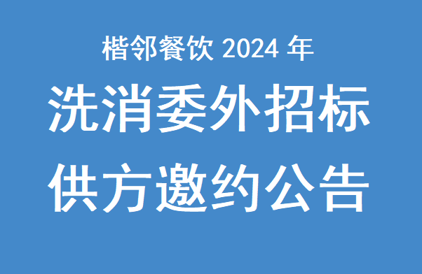 楷鄰餐飲2024年洗消委外招標(biāo)供方邀約公告我公司擬就楷鄰餐飲公司所屬各餐廳的洗消員/保潔員外包招標(biāo)進(jìn)行邀請(qǐng)報(bào)名,茲邀請(qǐng)有相關(guān)資質(zhì)的優(yōu)質(zhì)供應(yīng)商前來報(bào)名投標(biāo)。現(xiàn)將有關(guān)事項(xiàng)說明如下:一、項(xiàng)目名稱:楷鄰餐飲林洗消/保潔委外招標(biāo)供方邀約二、邀約主體:
