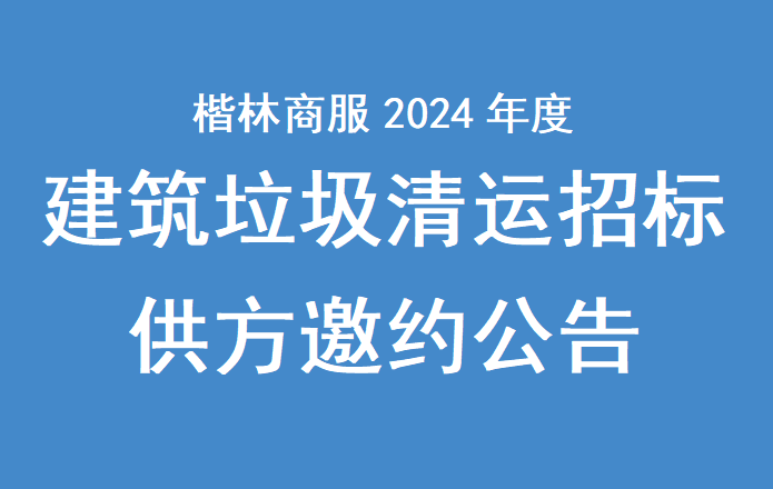 楷林商務(wù)服務(wù)集團(tuán)有限公司鄭州區(qū)域建筑垃圾清運(yùn)招標(biāo)供方邀約公告我公司擬就楷林商務(wù)服務(wù)集團(tuán)有限公司鄭州區(qū)域建筑垃圾清運(yùn)招標(biāo)進(jìn)行邀請(qǐng)報(bào)名,茲邀請(qǐng)有實(shí)力的相關(guān)優(yōu)質(zhì)供應(yīng)商前來報(bào)名投標(biāo)。現(xiàn)將有關(guān)事項(xiàng)說明如下:一、項(xiàng)目名稱:楷林商務(wù)服務(wù)集團(tuán)有限公司鄭州區(qū)