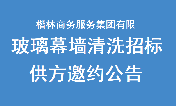 楷林商務(wù)服務(wù)集團(tuán)有限公司幕墻玻璃清洗招標(biāo)供方邀約公告我公司擬就2024年度幕墻玻璃清洗招標(biāo)進(jìn)行邀請(qǐng)報(bào)名,茲邀請(qǐng)有實(shí)力的相關(guān)優(yōu)質(zhì)供應(yīng)商前來報(bào)名投標(biāo)?,F(xiàn)將有關(guān)事項(xiàng)說明如下:一、項(xiàng)目名稱:楷林商務(wù)服務(wù)集團(tuán)有限公司幕墻玻璃清洗招標(biāo)供方邀約二、邀約主