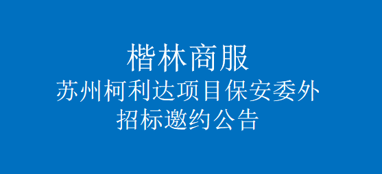 楷林商服蘇州柯利達(dá)項(xiàng)目保安委外招標(biāo)供方邀約公告我公司擬就楷林商務(wù)服務(wù)集團(tuán)蘇州柯利達(dá)項(xiàng)目保安委外招標(biāo)進(jìn)行供方邀請(qǐng)報(bào)名,茲邀請(qǐng)全國(guó)(蘇州區(qū)域有實(shí)管項(xiàng)目)相關(guān)優(yōu)質(zhì)公司前來報(bào)名投標(biāo)?,F(xiàn)將有關(guān)事項(xiàng)說明如下:一、項(xiàng)目名稱:楷林商服蘇州柯利達(dá)項(xiàng)目保安委外