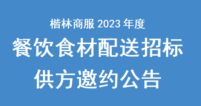 楷林商務(wù)服務(wù)集團(tuán)餐飲食材配送招標(biāo)供方邀約公告我公司擬就楷林商務(wù)服務(wù)集團(tuán)餐飲食材配送招標(biāo)進(jìn)行邀請報(bào)名,茲邀請有實(shí)力的相關(guān)優(yōu)質(zhì)供應(yīng)商前來報(bào)名投標(biāo)?,F(xiàn)將有關(guān)事項(xiàng)說明如下:一、項(xiàng)目名稱:楷林商務(wù)服務(wù)集團(tuán)餐飲食材配送招標(biāo)供方邀約二、邀約主體:楷林商務(wù)