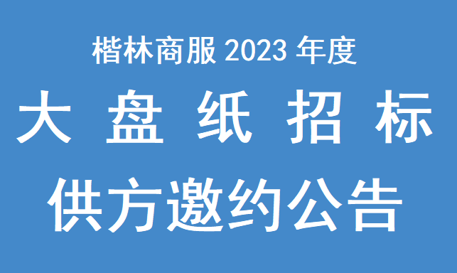 楷林商務(wù)服務(wù)集團(tuán)2023年度大盤紙招標(biāo)供方邀約我公司擬就楷林商務(wù)服務(wù)集團(tuán)2023年度大盤紙采購招標(biāo)進(jìn)行邀請報(bào)名,茲邀請相關(guān)優(yōu)質(zhì)供應(yīng)商前來報(bào)名投標(biāo)?,F(xiàn)將有關(guān)事項(xiàng)說明如下:一、項(xiàng)目名稱:楷林商務(wù)服務(wù)集團(tuán)2023年度大盤紙招標(biāo)供方邀約。二、邀約主