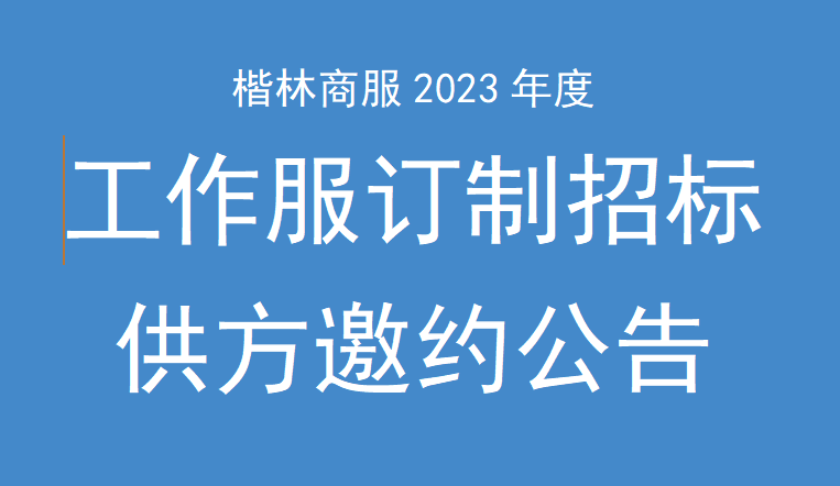 楷林商服2023年度工作服訂制招標(biāo)供方邀約公告我公司擬就2023年度工作服訂制招標(biāo)進(jìn)行邀請(qǐng)報(bào)名,茲邀請(qǐng)有實(shí)力的相關(guān)優(yōu)質(zhì)供應(yīng)商前來報(bào)名投標(biāo)?,F(xiàn)將有關(guān)事項(xiàng)說明如下:一、項(xiàng)目名稱:楷林商服2023年度工作服訂制招標(biāo)供方邀約二、邀約主體:楷林商務(wù)服
